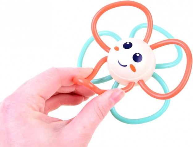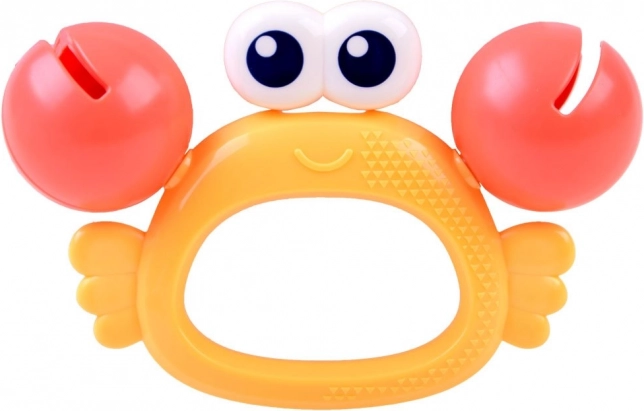 Krabo formos barškutis su ryškiai oranžiniu kūnu ir patogiais sugriebti žnyplėmis suteikia puikią vizualinę stimuliaciją ir yra lengvai paimamas mažomis rankutėmis.