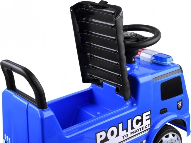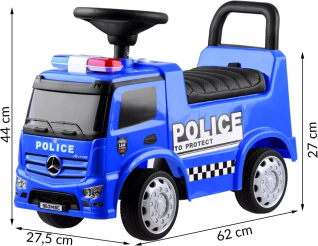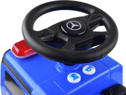 Pavažėlė Mercedes Policija – puikus pasirinkimas mažiesiems. Ji aprūpinta garso signalu ir šviečiančiu švyturėliu, kuriuos galima aktyvuoti mygtukais. Patogi sėdynė su atlošu užtikrina saugią ir komfortišką kelionę, o dėl specialaus blokatoriaus transporto priemonė neapvirsta atgal.