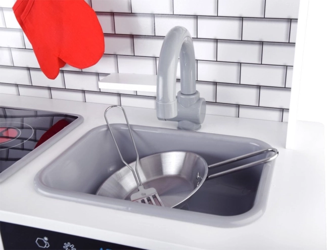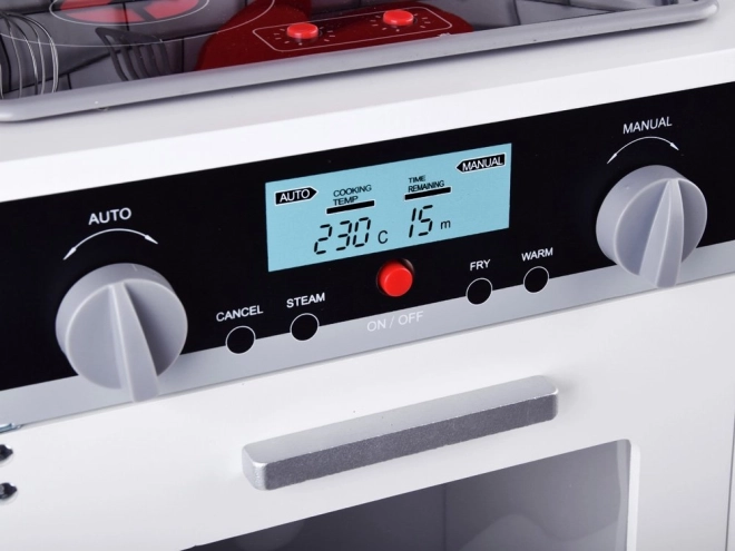 Virtuvėlė turi šviesos ir garso efektus, kurie vaikams suteikia tikrovišką gaminimo įspūdį.