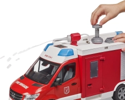 Realistiškas gaisrinis automobilis MERCEDES-BENZ Sprinter iš Bruder pradžiugins kiekvieną mažą gelbėtoją. Siūlo veikiantį vandens patranką su baku ir siurbliu, šviesos ir garso modulį, atsidarančias duris ir daiktadėžes bei minkštus padangų protektorius puikiam žaidimui. Aukštos kokybės gamyba iš patvaraus ABS plastiko ir suderinamumas su BWORLD priedais užtikrina ilgaamžiškumą ir smagumą.
