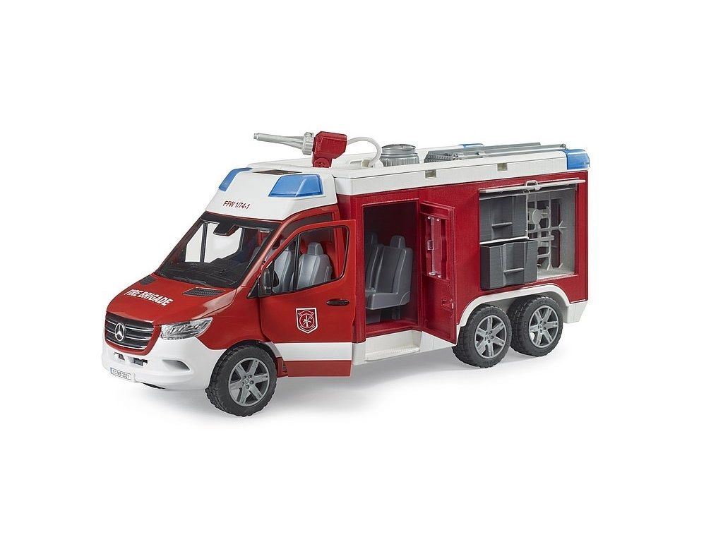 Pilnai veikianti vandens sistema su baku, siurbliu ir susukama žarna leidžia „užgesinti“ bet kokį gaisrą akimirksniu. Šviesos ir garso modulis palaiko dinamiškus scenarijus, o minkšti padangų protektoriai užtikrina sklandų važiavimą. Modelis suderinamas su BWORLD priedais ir gali būti išplėstas stumdykle (Bruder 2581/2582) arba derinamas su bworld gaisrine stotimi (Bruder 62702).