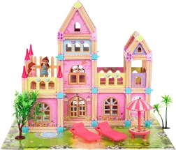 Vaikiškas medinis princesių namelis suteikia galimybę pastatyti gražų namelį su kūrybiniais elementais vaikams. Rinkinyje yra 183 detalės, įskaitant dvi princesių figūrėles, kurių dėka vaikai gali ugdyti pasakojimo įgūdžius. Namelis turi kelis aukštus ir balkonus, todėl galima kurti įvairius žaidimo scenarijus.