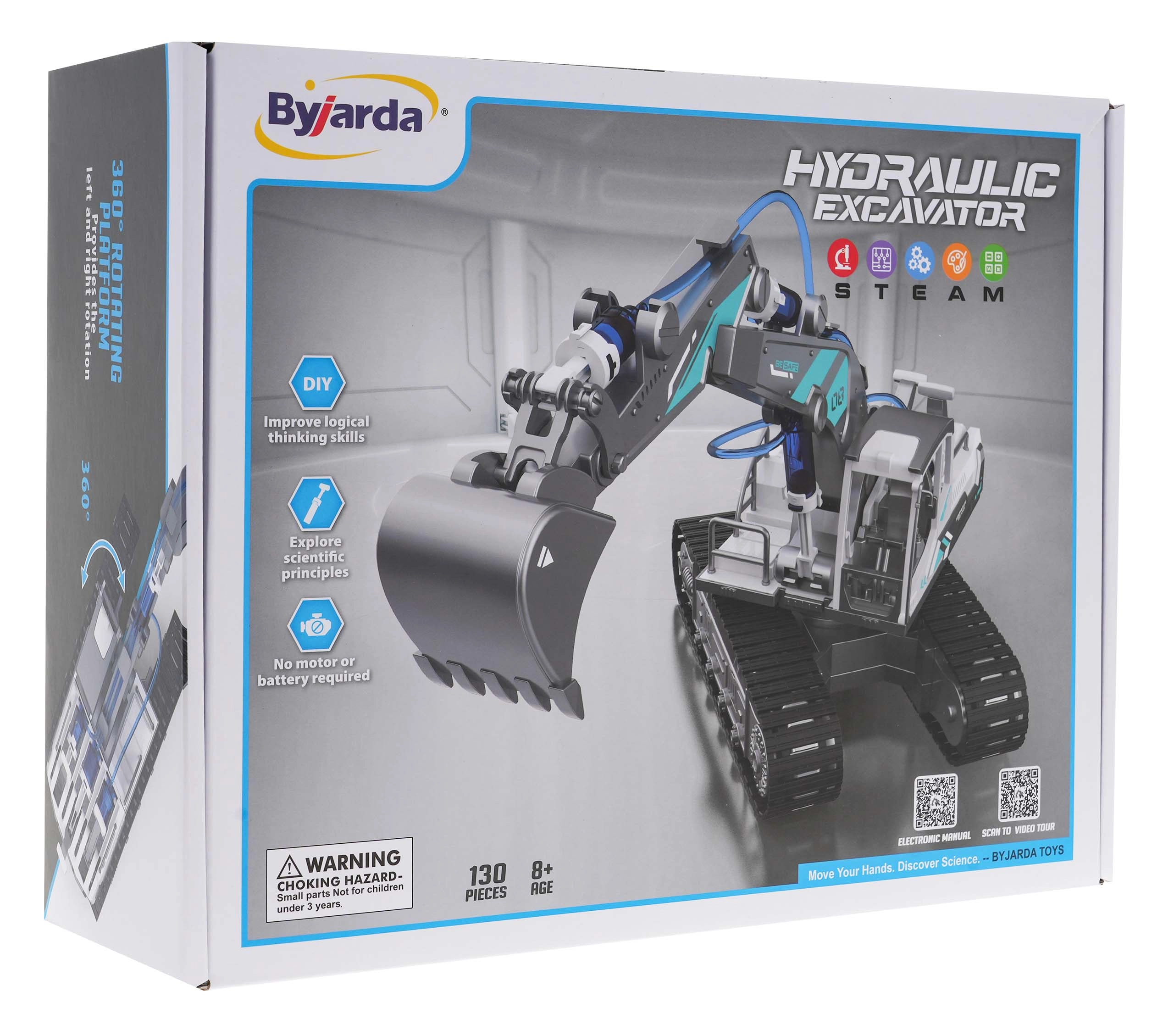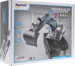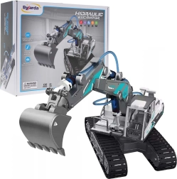 Hidraulinis ekskavatorius surinkimui – tai edukacinė konstrukcinė dėlionė, kuri vaikams aiškiai parodo, kaip vandens hidraulinis slėgis paverčia jėgą judesiu. Surinkus nereikia jokių baterijų – valdymo svirtys ir vanduo judina strėlę, siją ir kaušą kaip tikrame statybiniame įrenginyje.