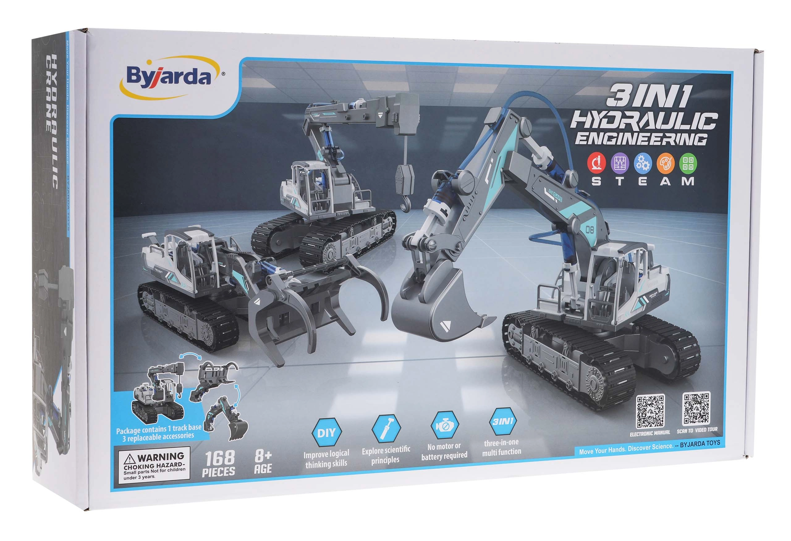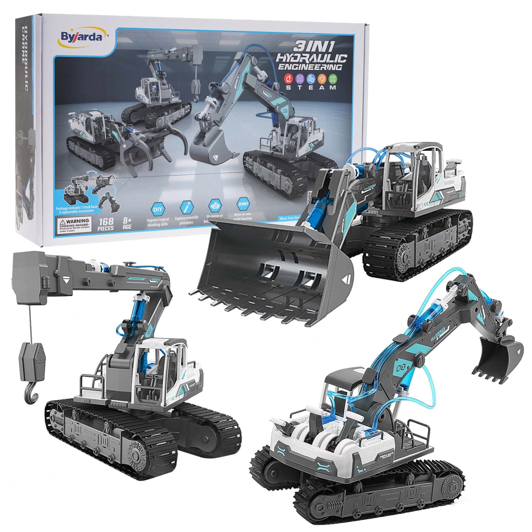 Atraskite kūrybišką 3 viename konstruktorių su 168 detalėmis vaikams nuo 8 metų. Surinkite ekskavatorių, medienos krautuvą arba kraną ir valdykite juos naudodami hidraulinę vandens pavarą – be baterijų! Realistiškos funkcijos, tokios kaip kėlimas, nuleidimas, 360° pasukimas ir guminiai vikšrai, užtikrins valandas pramogų ir mokymosi.