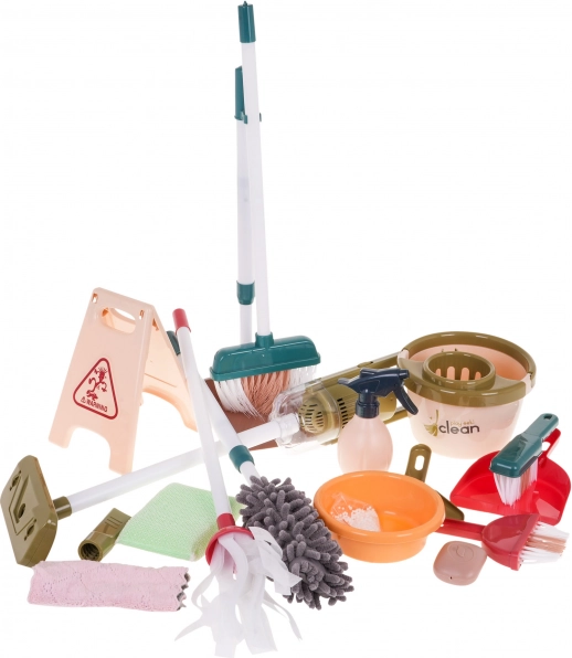 Vaikiškame valymo rinkinyje yra tokie įrankiai kaip šluota su kotu, šepetys, šluotelės ir mažas dulkių siurblys, kurie atkuria tikrus įrankius ir suteikia žaidimui realistiškumo.