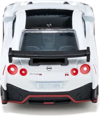 Šis Nissan GT‑R Nismo modelis atneša ikoninę supersporto automobilio išvaizdą į jūsų vitriną ir žaidimų pasaulį. Balta kėbulo spalva su raudona apvadine linija, realistiški galiniai žibintai ir sportinis spoileris pabrėžia automobilio lenktyninę DNR.