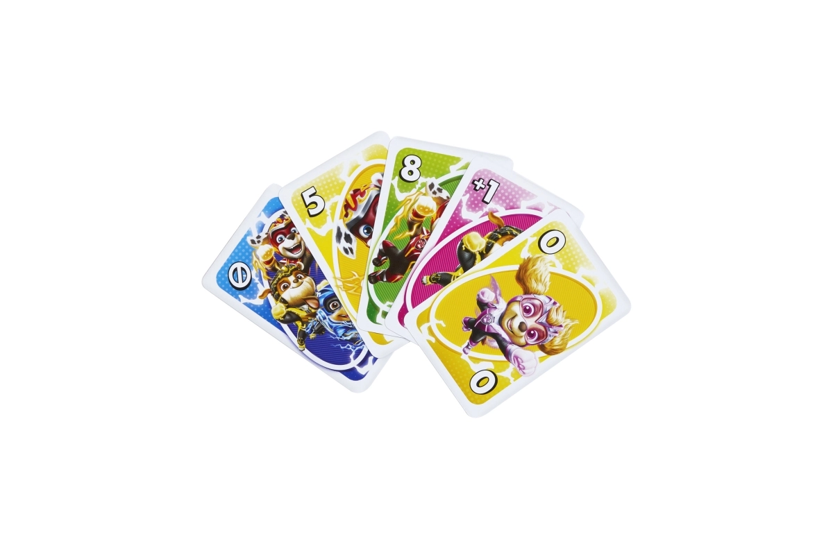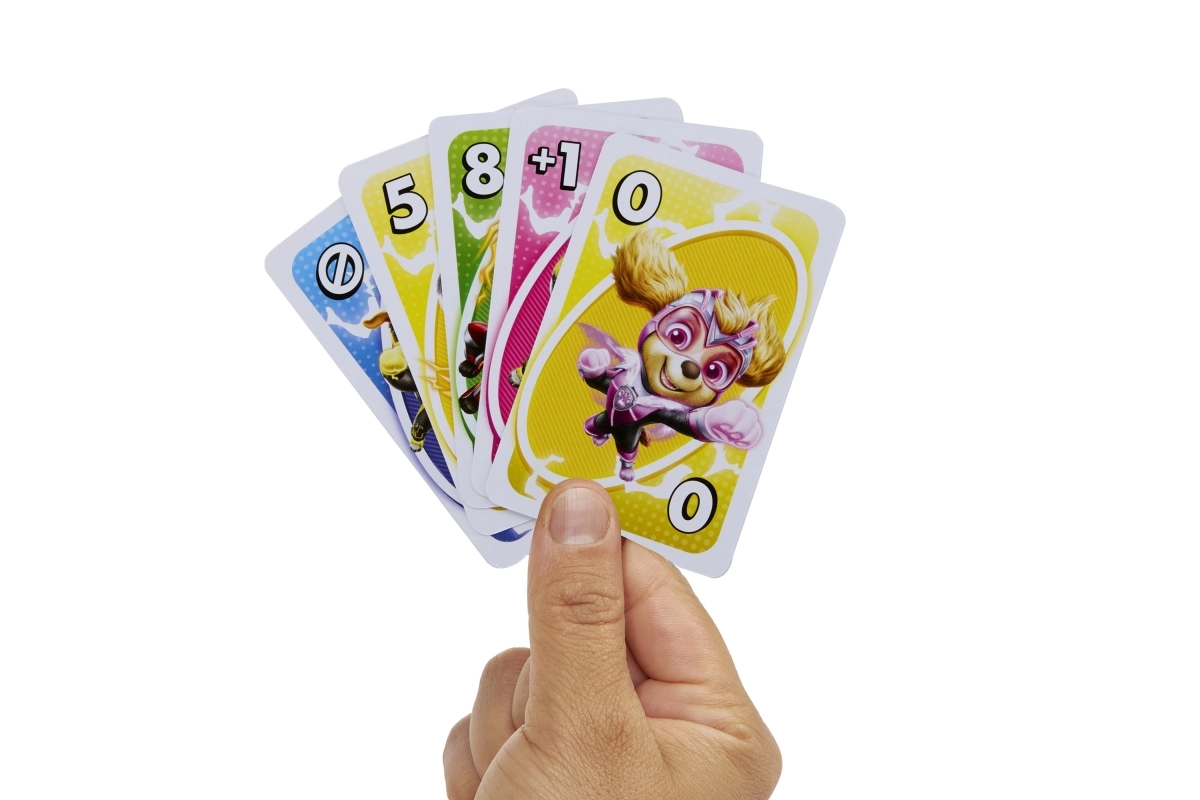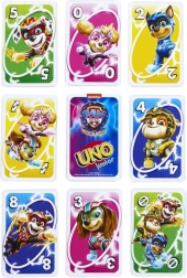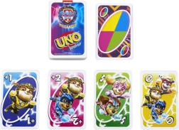 Mėgstamas šeimos žaidimas UNO pateikiamas vaikiškoje versijoje su Patrulių šunų filmo motyvais. Spalvingos kortos su dideliais skaičiais ir personažais palengvina atpažinimą ir padeda mokytis spalvų, skaičių ir pagrindinių žaidimo principų.