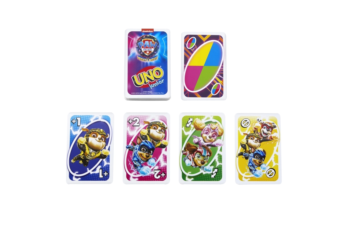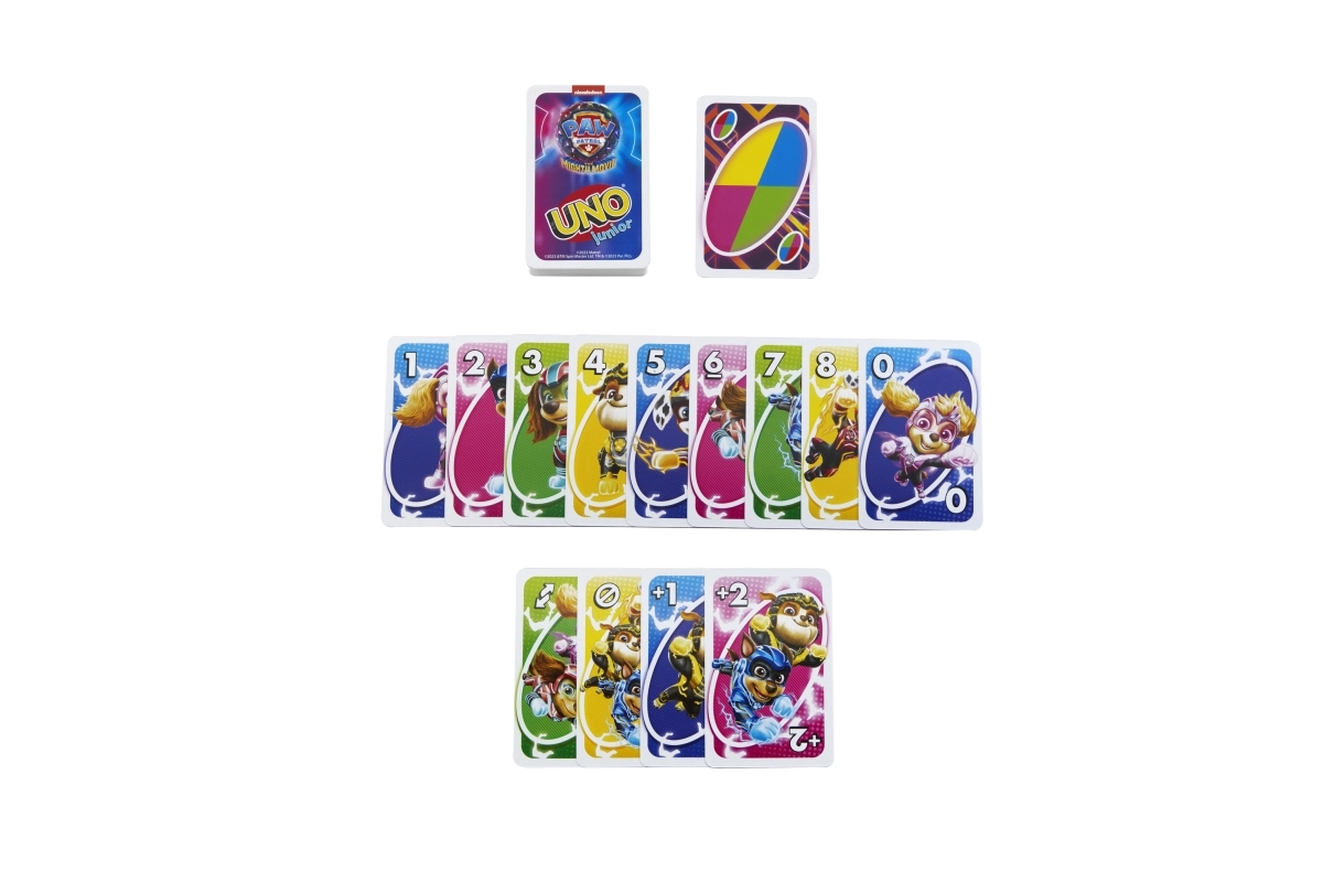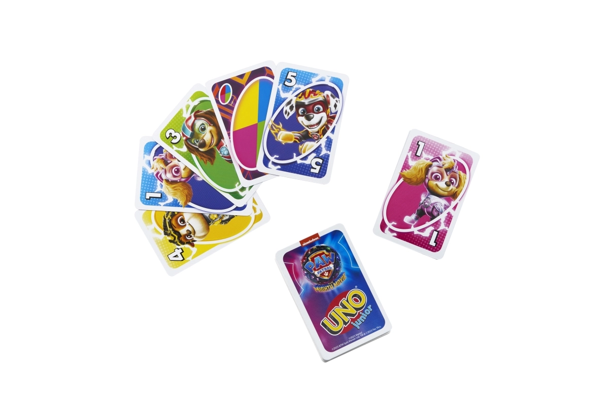Vaikiškas kortų žaidimas UNO Junior su Patrulių šunų herojais siūlo linksmą spalvų ir skaičių derinimą trimis sunkumo lygiais įgūdžiams augti. Idealu vaikams nuo 3 metų, su didelėmis, aiškiomis kortomis ir paprastomis taisyklėmis. Nepamirškite su paskutine korta sušukti UNO!