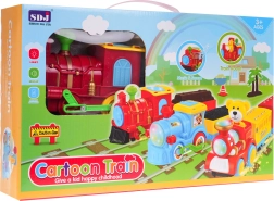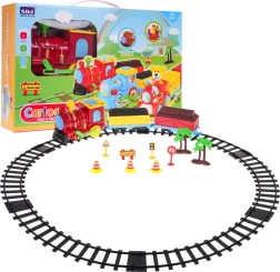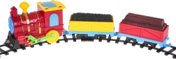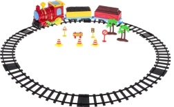 Rinkinyje yra lokomotyvas, 2 vagonai ir bėgiai į žiedą, kurio skersmuo apie 72,5 cm, taip pat ženklai, kūgiai ir medeliai.