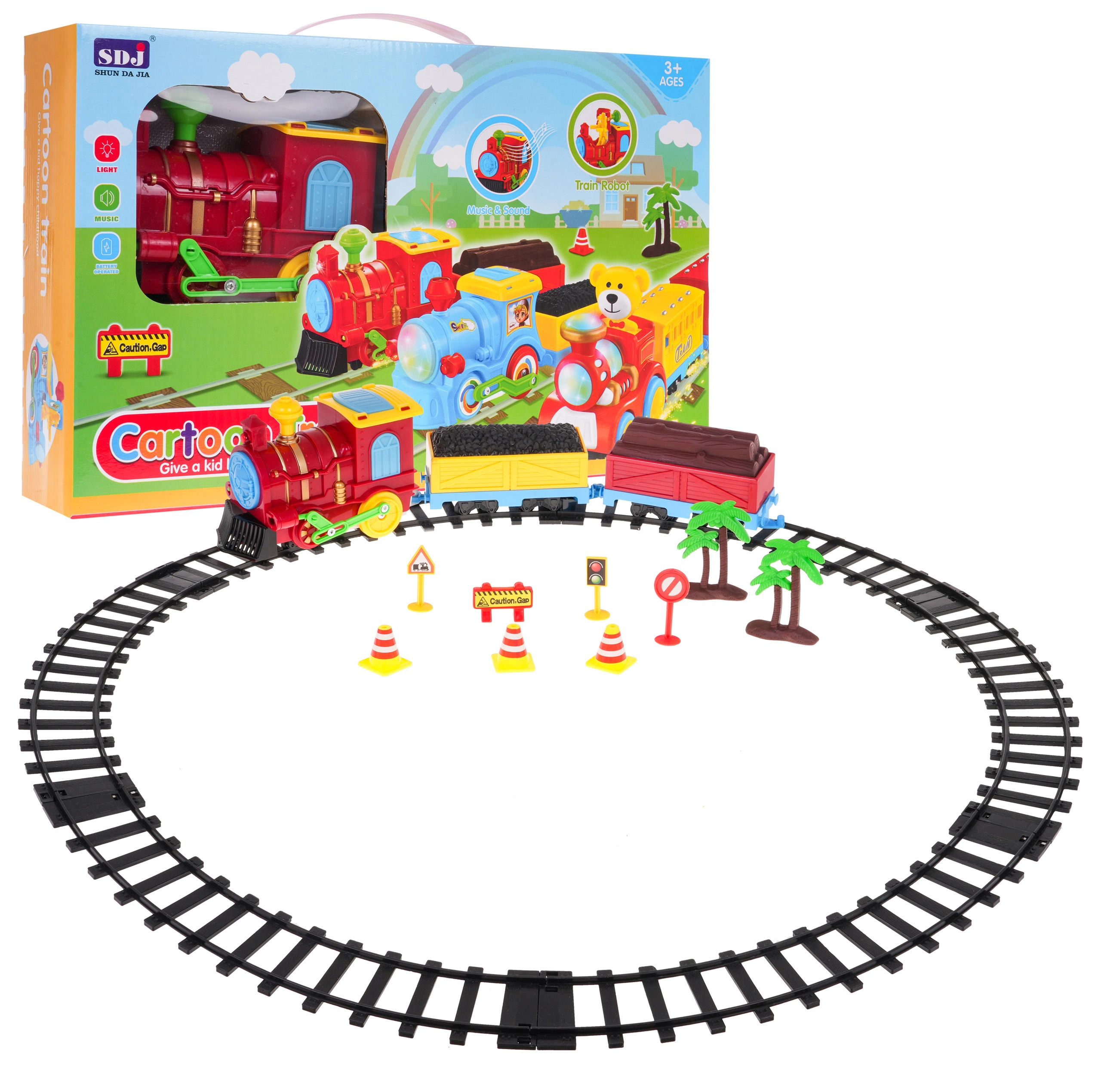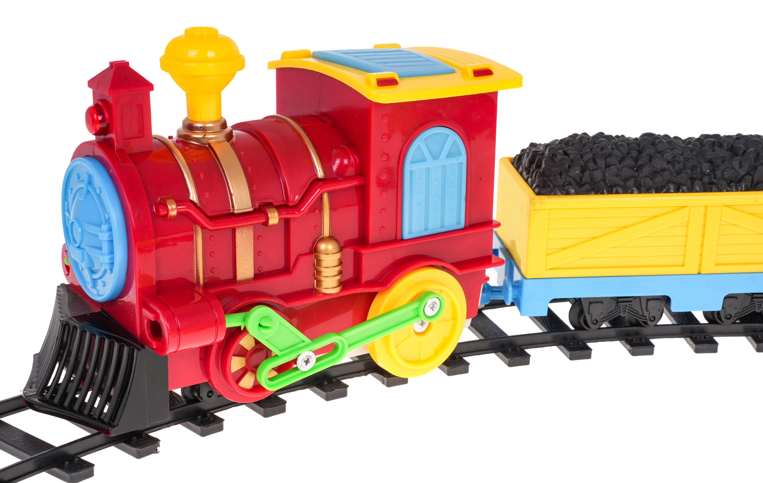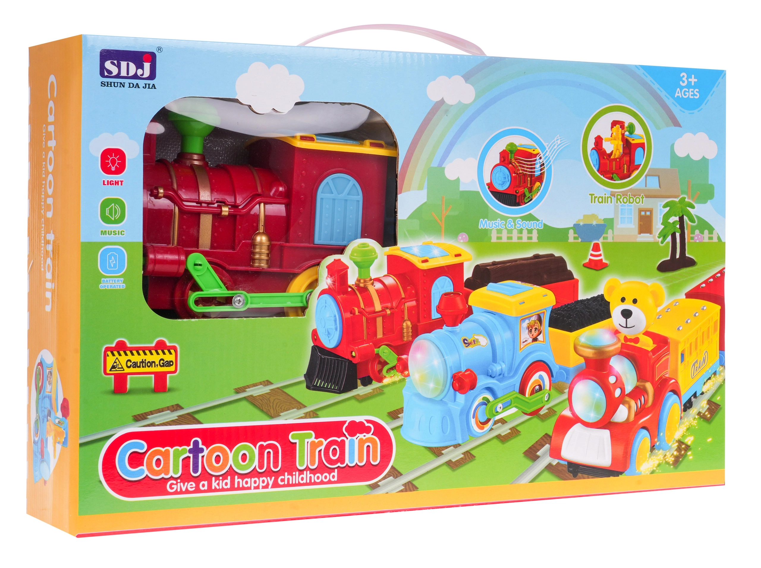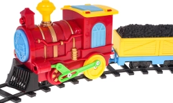 Šis spalvingas plastikinis traukinio rinkinys pradžiugins kiekvieną mažą mašinistą. Lokomotyvas turi mirksinčias šviesas priekyje, viršuje ir kabinos šonuose, o važiavimo metu skleidžia realistiškus garsus. Įdomi detalė – atsidarančios kabinos mechanizmas, iš kurios važiavimo metu išslenka roboto figūrėlė.