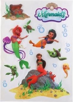 Žavėkite vaikų kambarį jūros gelmių magija. Rinkinyje yra kelios 3D undinėlių lipdukų ir papildomų motyvų (žuvelės, vėžliai ir kt.), kuriuos galima laisvai išdėstyti ir sukurti originalią kompoziciją. Lipdukai pagaminti iš kokybiško plastiko, puikiai laikosi ant lygaus paviršiaus ir lengvai klijuojasi.