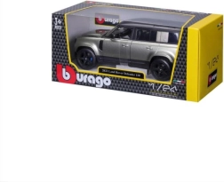 Atraskite ikoninį visureigį tikslios repliko formoje – metalinį modelį Bburago 1:24 Land Rover Defender 110 žalios spalvos. Metalinio die-cast kėbulo ir plastikinių detalių derinys siūlo puikų eksterjero ir interjero atlikimą, kuris išsiskiria tiek lentynoje, tiek žaidžiant.