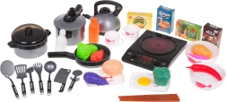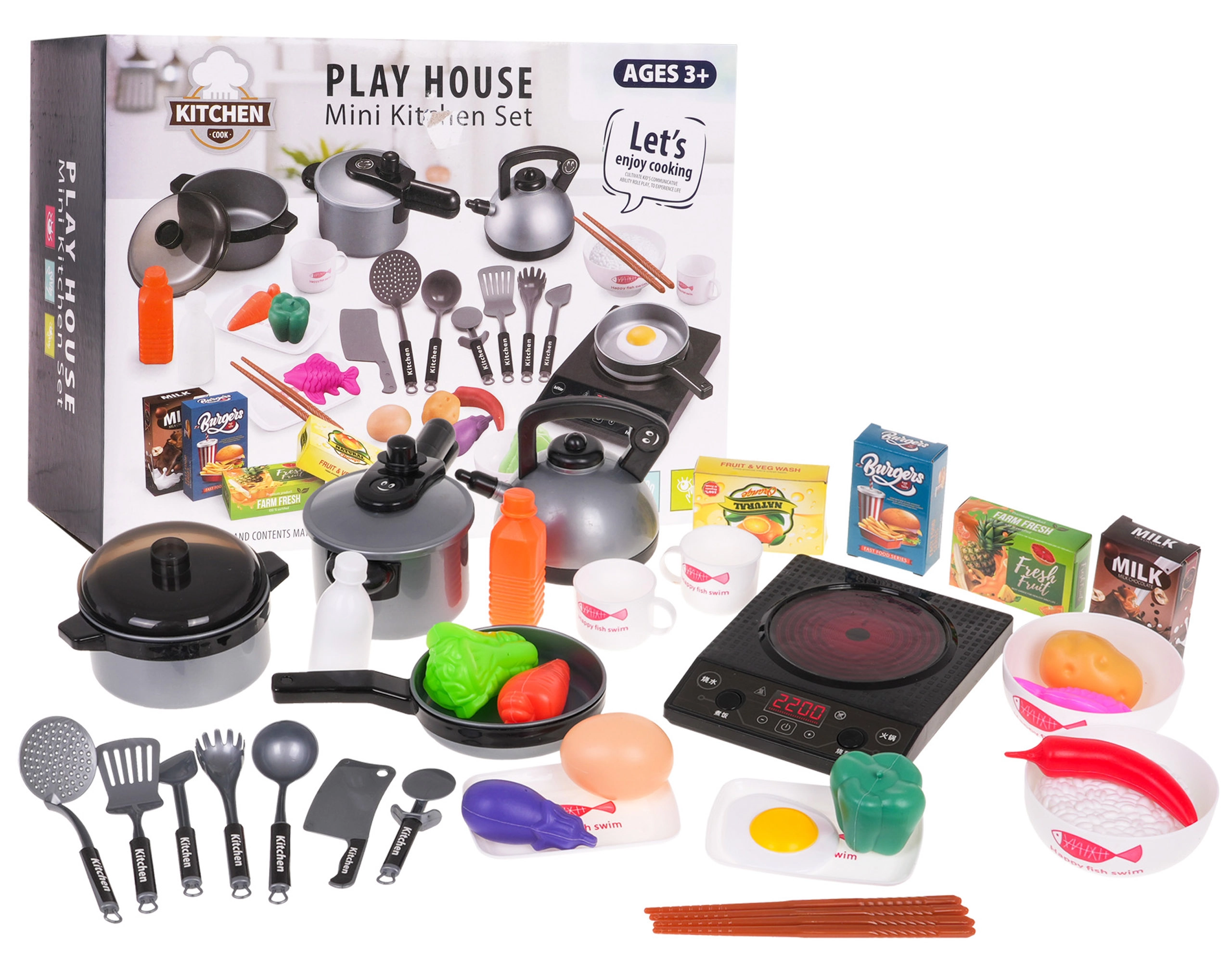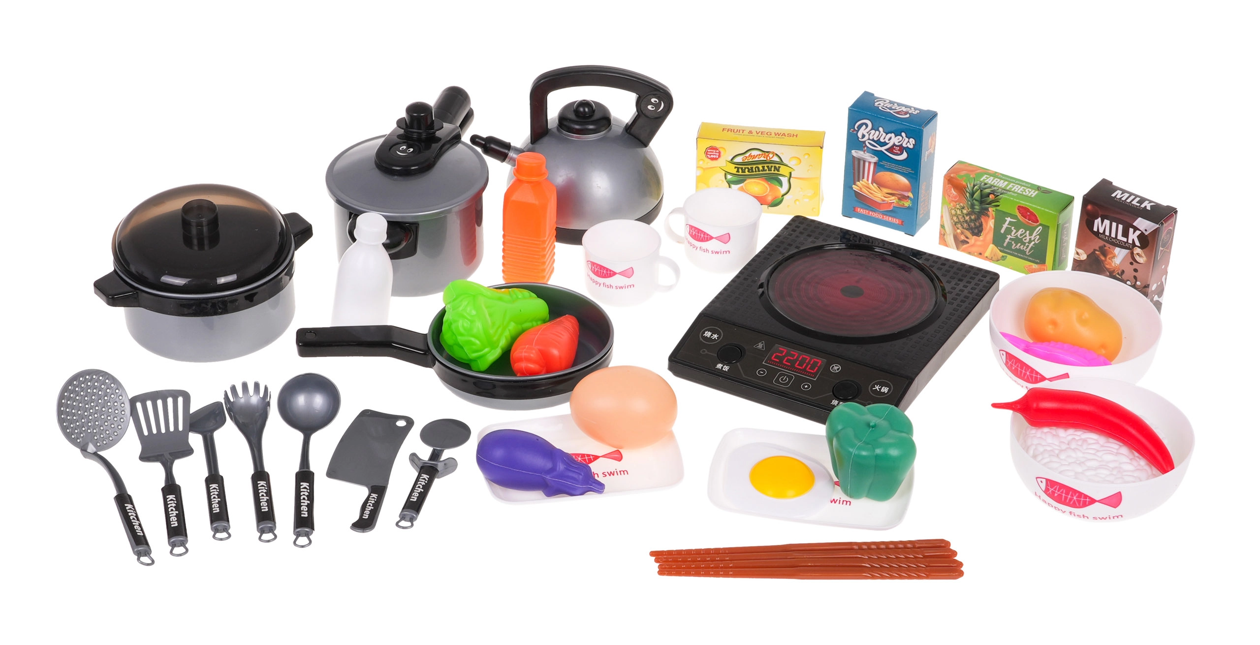 Šis nuostabus virtuvės rinkinys turi viską, ko gali prireikti mažajam virėjui. Indukcinė viryklė, maitinama trimis AA baterijomis, skleidžia realistiškus kepimo ir virimo garsus, o saugūs plastikiniai elementai, tokie kaip puodai, keptuvės ir kiti priedai, puikiai tinka vaikų žaidimams – be aštrių briaunų ir traumų rizikos. Rinkinyje yra įvairių maisto produktų imitacijų, įskaitant kiaušinius, žuvį ir daržoves, kurios suteikia žaidimui autentiškumo.