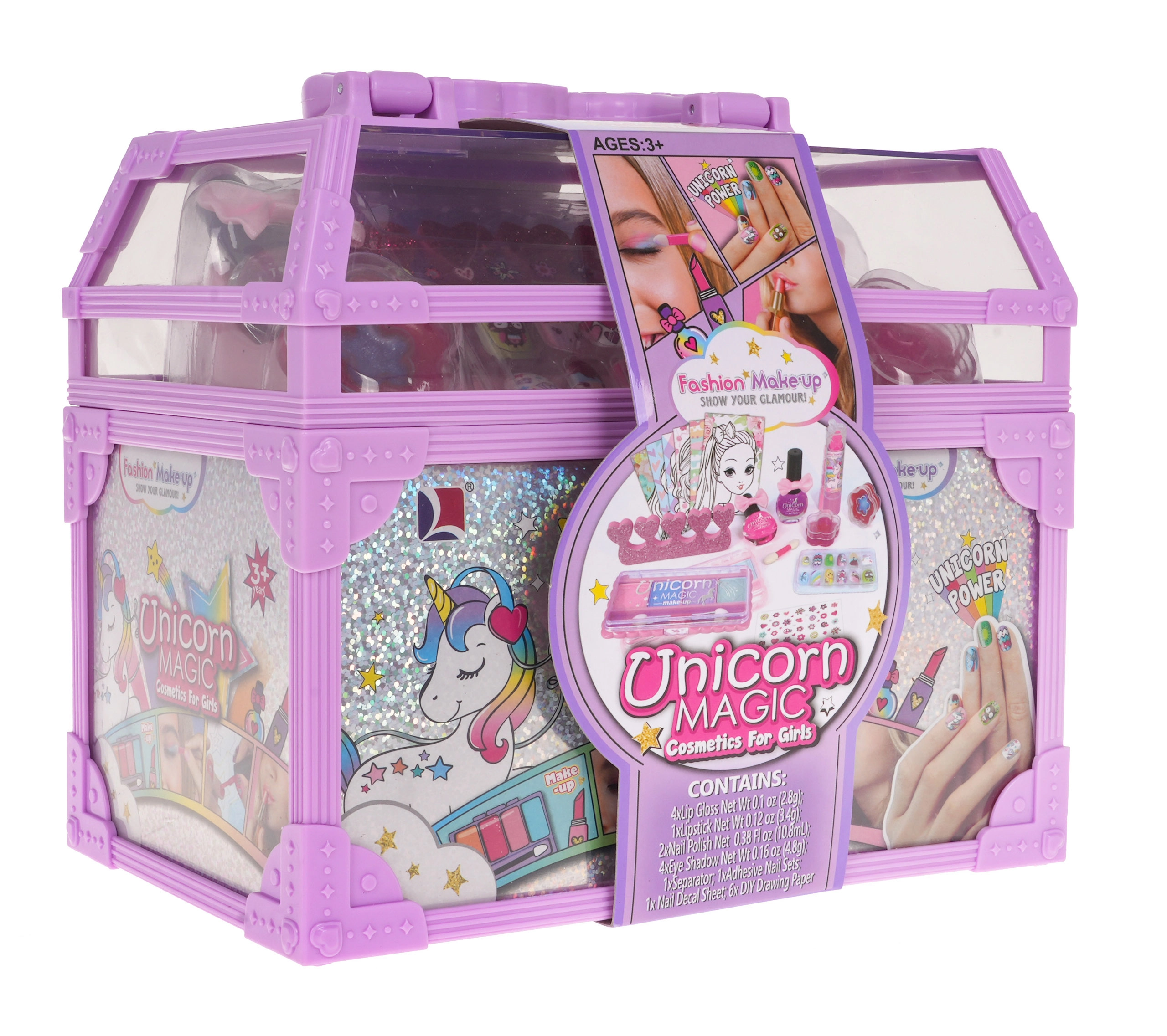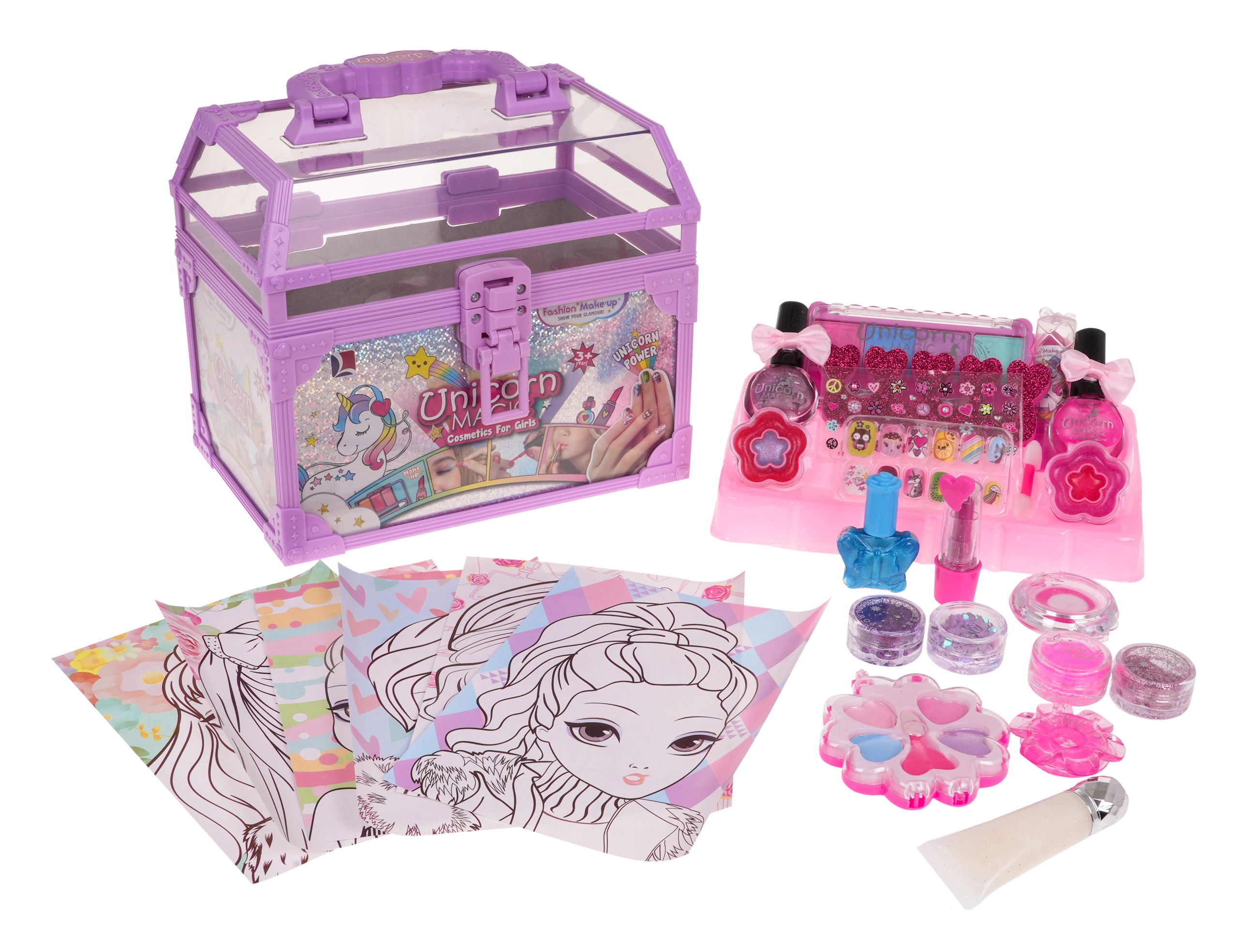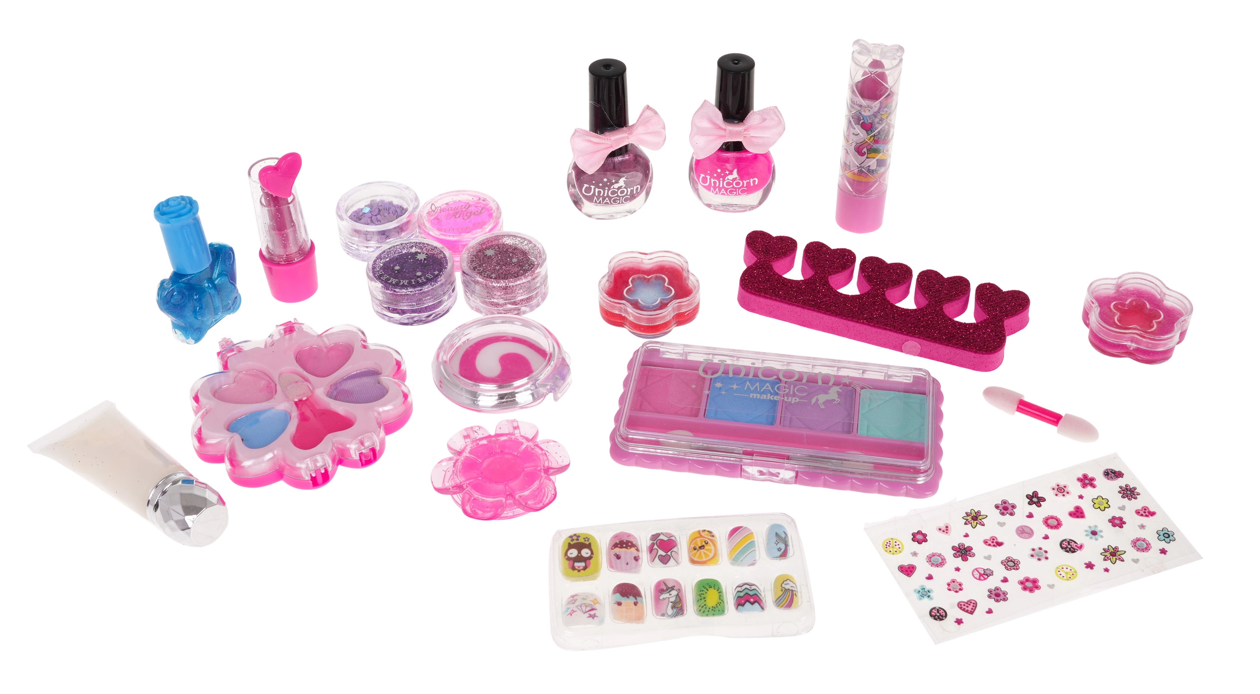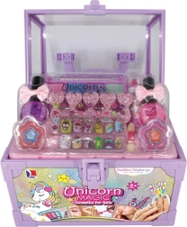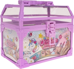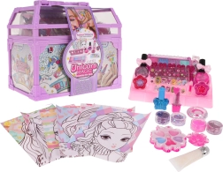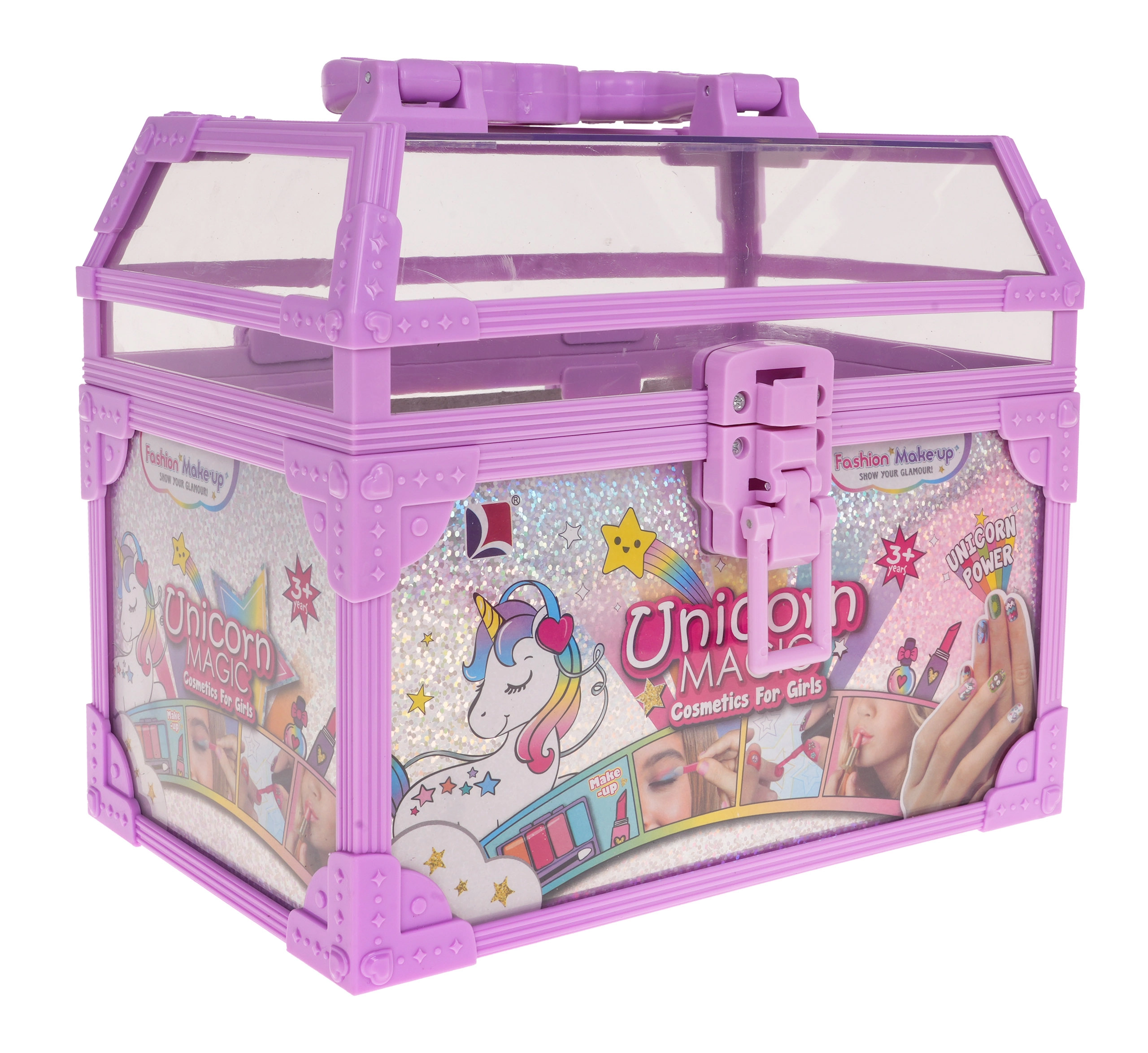 Kosmetikos rinkinys princesėms apima platų saugių kosmetikos gaminių asortimentą patogioje dėžutėje su vienaragio motyvu. Dėžutė turi rankenėlę lengvam nešiojimui, todėl vaikai gali pasiimti mėgstamas kosmetikos priemones bet kur.