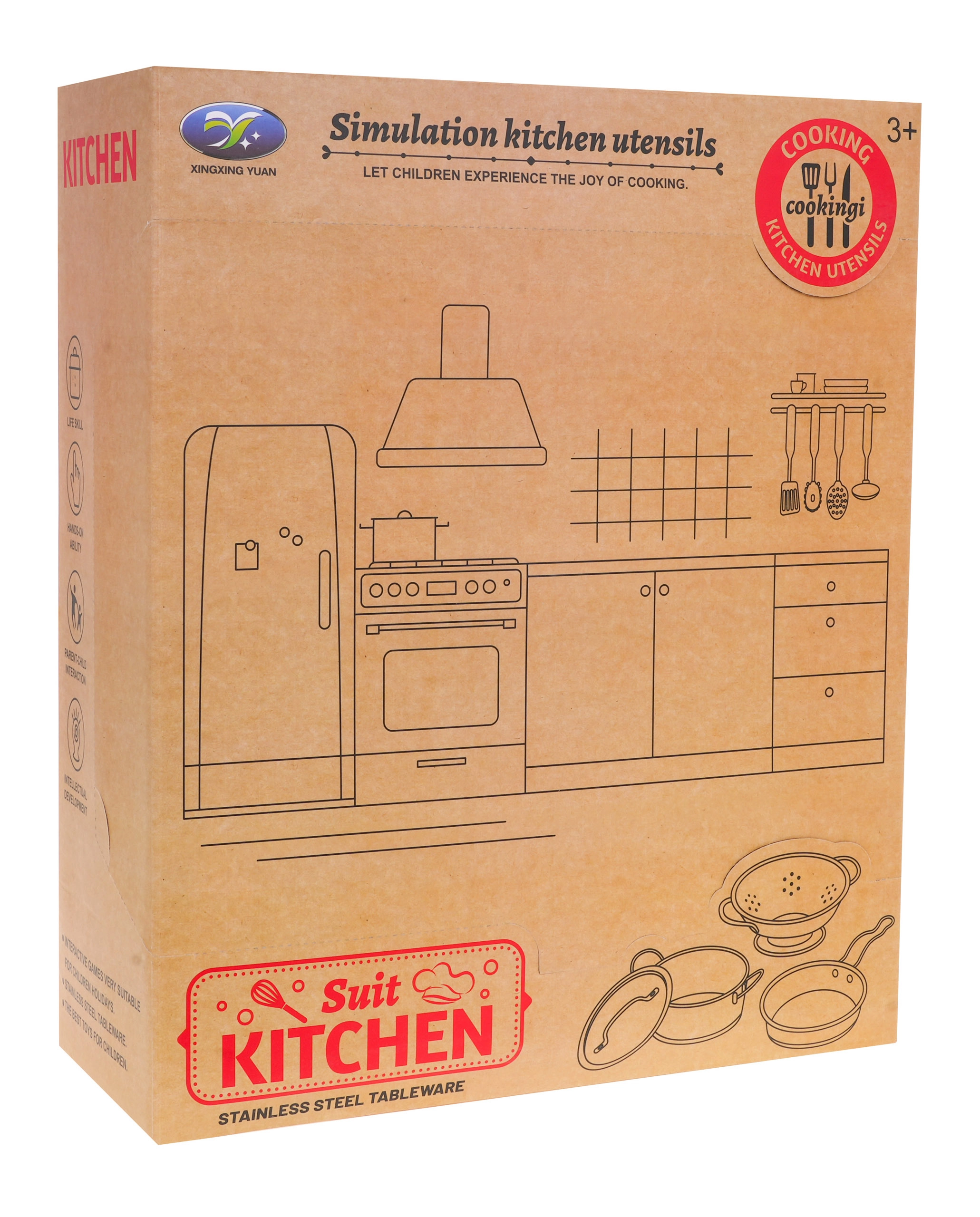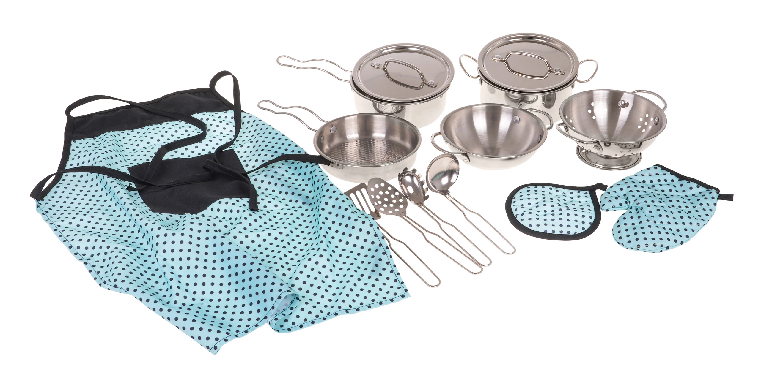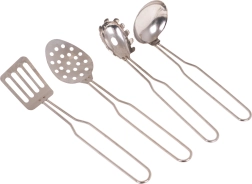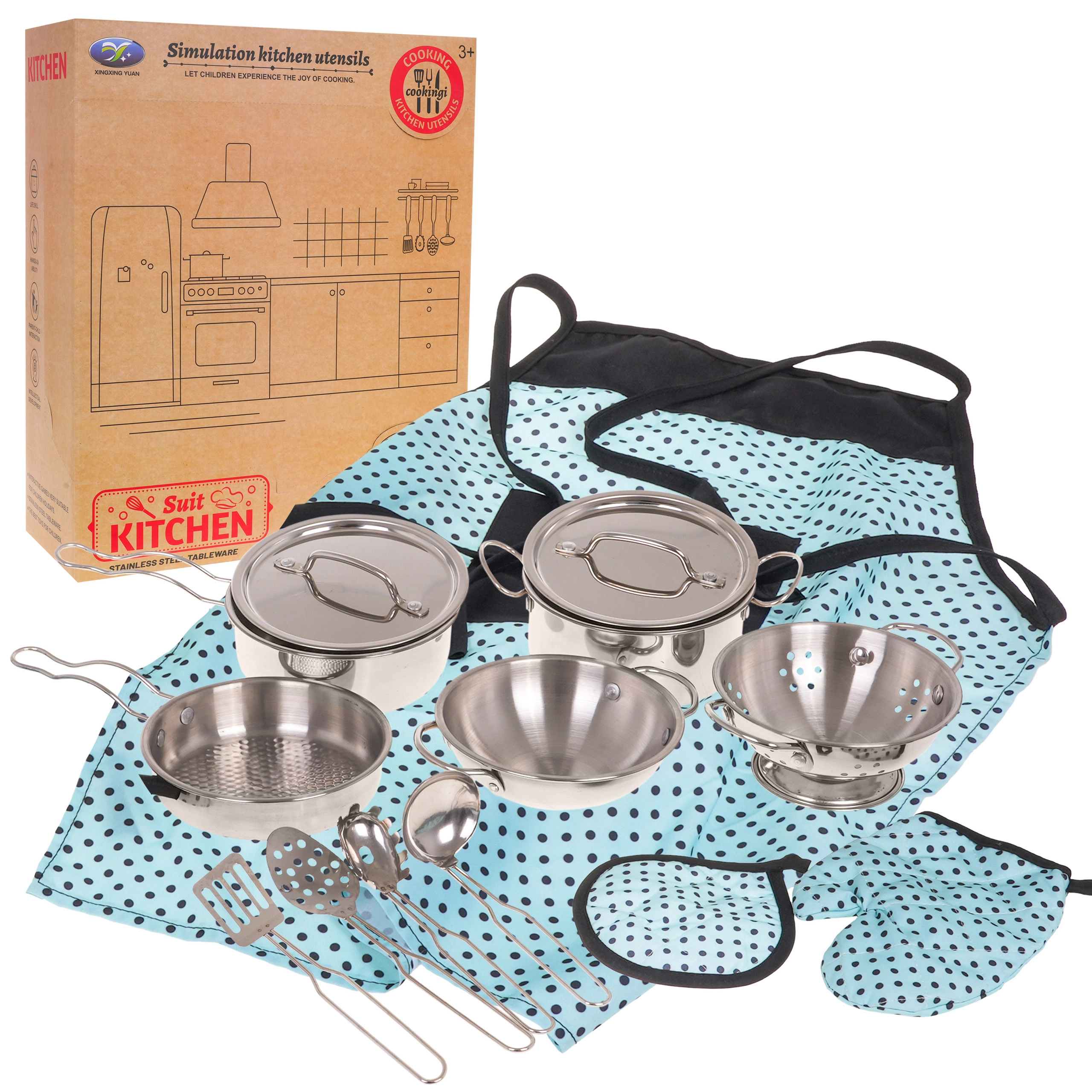 Pagamintas iš patvaraus metalo, šis rinkinys užtikrina ilgaamžiškumą ir tikroviškumą mažajai virtuvei.