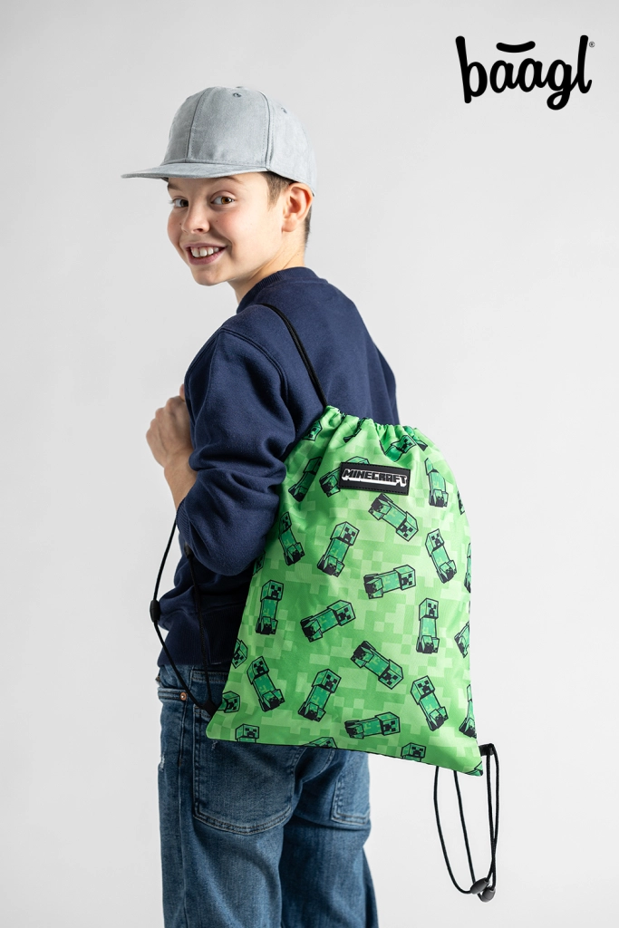 Žalias pikselių raštas ir Creeper motyvas traukia akį iš pirmo žvilgsnio ir puikiai dera kaip komplektas tiek į mokyklą, tiek į būrelius.