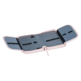 Viduje rasite išmanų išdėstymą su elastingais laikikliais ir kišenėlėmis pieštukams, pieštukinėms, trintukui ir liniuotei. Dėl tvirto apdirbimo ir patvaraus užtrauktuko visos rašymo priemonės liks saugiai savo vietose. Penalą gausite be reikmenų, tad lengvai pritaikysite savo poreikiams.