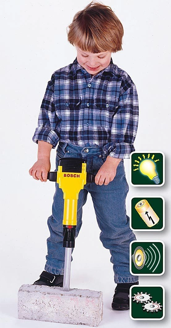 Vaikiškas pneumatinis plaktukas BOSCH iš Klein yra tikro įrankio kopija ir puikiai tinka mažiesiems statytojams. Geltona spalva su juodais ir sidabriniais elementais, raudonu BOSCH logotipu ir efektyvia ergonomika skatina vaizduotę ir smulkiąją motoriką.