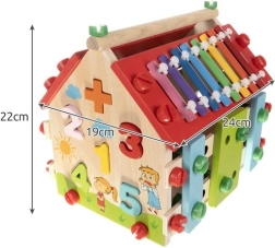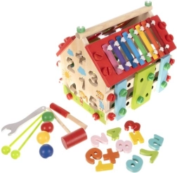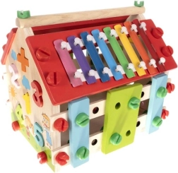 Medinis vaikų namelis – tai daugiafunkcis ir edukacinis žaislas, sukurtas vaikų motoriniams ir kognityviniams gebėjimams lavinti. Jame yra įvairių veiklų, įskaitant ksilofoną ir formų rūšiuokles, užtikrinančias puikią pramogą.