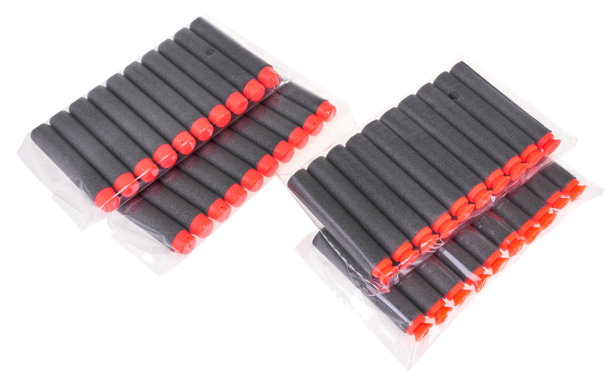 Minkšto materialo šoviniai su guminiu galiuku saugiam žaidimui.