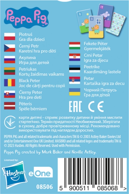 Atraskite klasikinį šeimos pramogų žaidimą mielame PEPPA PIG stile. Kortų žaidimas Juodasis Petras iš Trefl išsiskiria spalvingu dizainu ir žinomais mėgstamo serialo herojais. Paprastos taisyklės ir trumpi žaidimo raundai daro šį žaidimą idealiu pasirinkimu tiek vaikams, tiek tėvams.