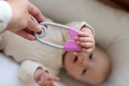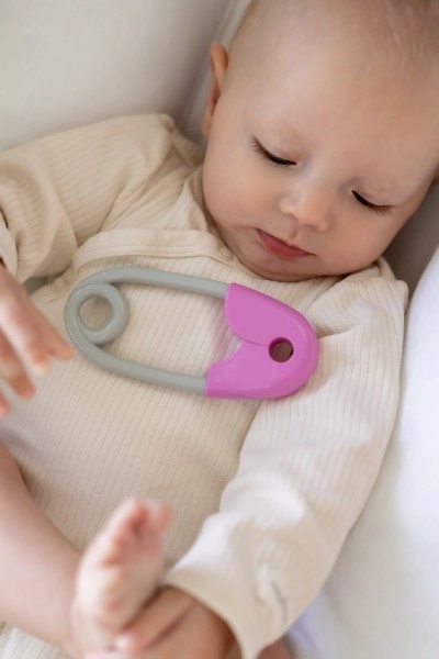 Segtuko formos barškutis yra būtina kiekvieno kūdikio kraitelio dalis. Jis sukurtas taip, kad būtų lengvai sugriebiamas mažomis rankytėmis ir dėl savo lengvumo nevargintų jų. Jo rožinė–pilka kontrastinė spalvų derinys patraukia dėmesį ir stiprina regimąjį suvokimą. Vaikams patiks švelnus barškėjimas, lydintis kiekvieną judesį.