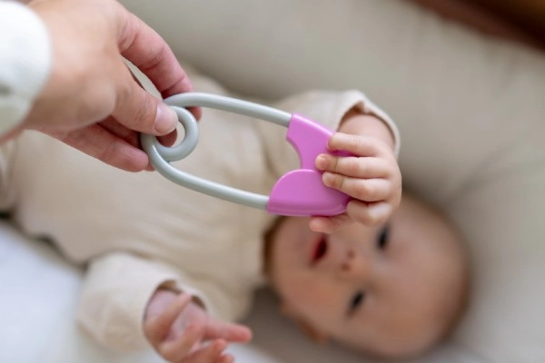 Dėl lengvos konstrukcijos žaislas idealiai tinka mažoms vaiko rankytėms – jį lengva sugriebti ir laikyti.