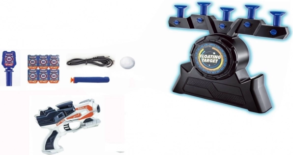 Ši šaudymo pramogų rinkinė apima judinamą taikinį, du plastikinius pistoletus, strėlytes ir kamuoliuką. Taikinio aukštis – 30 cm, jį lengva reguliuoti skirtingiems žaidimo lygiams. Galite įkrauti per USB laidą arba naudoti baterijas, kas suteikia lankstumo naudojant.