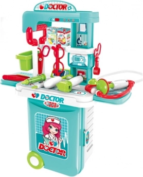 Gydytojo rinkinys 3 viename suteikia daug pramogų vaikams, kurie mėgsta žaisti gydytojus. Dėl patogaus lagaminėlio su ratukais jį galite pasiimti bet kur.