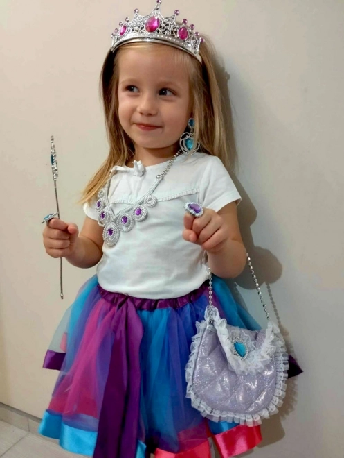 Vaikiškas princesės kostiumas su karūna, lazdele ir rankinuke – 9 dalių rinkinys