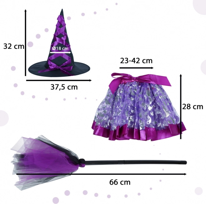 Aprenkite savo vaiką šiuo žavingu raganos kostiumo rinkiniu, kuriame yra dekoratyvinė skrybėlė, purpurinis sijonas su elastiniu juosmeniu ir išskirtinė šluota. Šis kostiumas puikiai tinka mokyklos karnavalams, teminiams renginiams ar smagiam vaidmenų žaidimui namuose.
