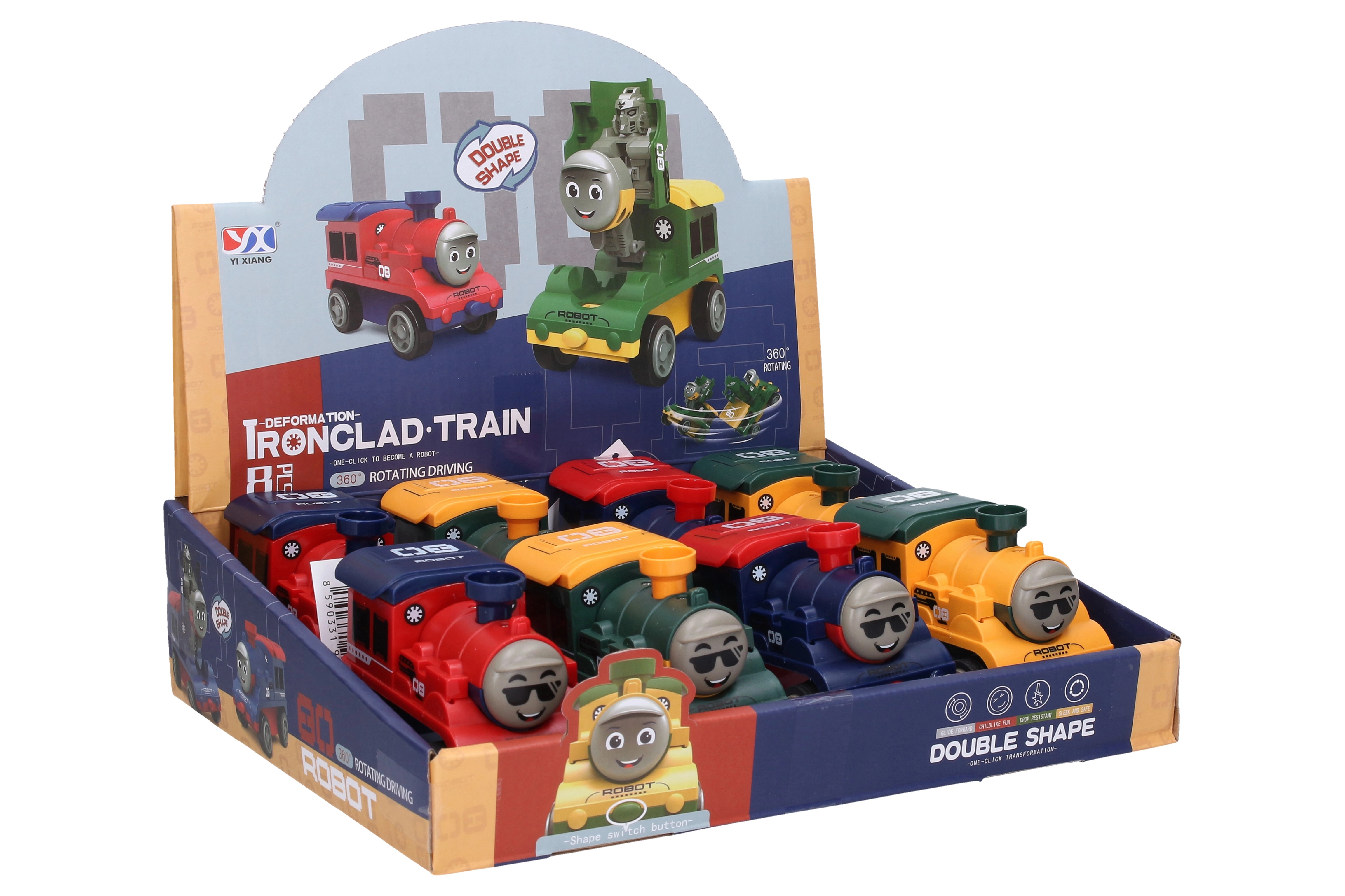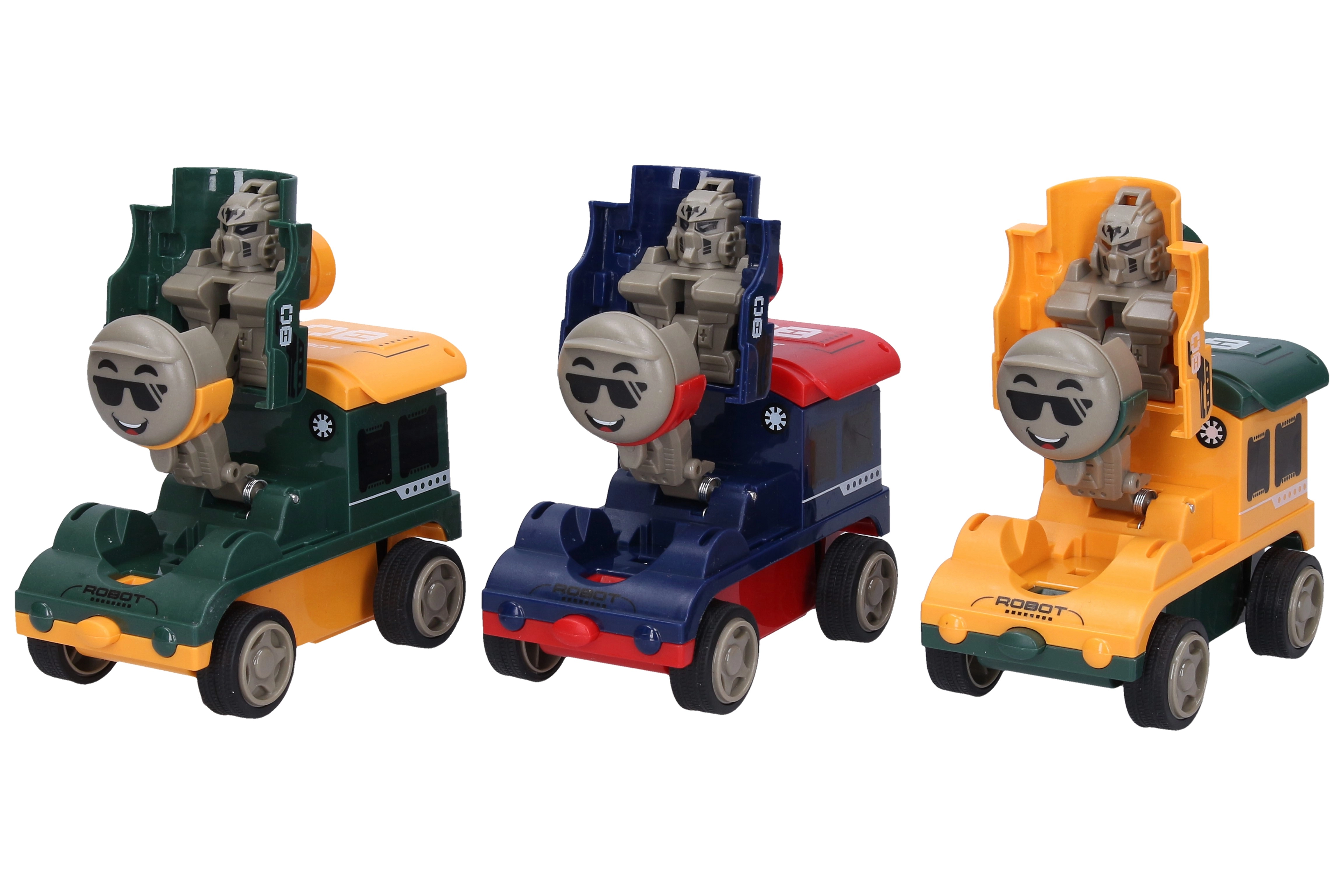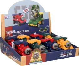 Smagus žaislas vaikams – automobilis-robotas traukinukas, 11 cm ilgio, jungiantis traukinių ir robotų pasaulius. Siūlomos 4 spalvinės versijos (raudona, geltona, mėlyna, žalia) – puikus pasirinkimas kūrybiškam žaidimui ir vaizduotės ugdymui.