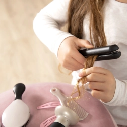 Atraskite kūrybišką vaikų kirpimo rinkinį su gausia komplektacija, kuris skatina vaizduotę, vaidmenų žaidimus ir smulkiąją motoriką. Rinkinyje yra žaislinis plaukų džiovintuvas su šviesos ir garso efektais, keičiami antgaliai, plaukų tiesintuvas, šepetys, šukos, segtukai ir gumytės – viskas, ko reikia žavingoms šukuosenoms namuose kurti. Tinka nuo 3 metų.