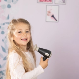 Žaislinis džiovintuvas atrodo ir skamba kaip tikras, todėl žaidimas vaikams nuo 3 metų tampa dar realesnis ir įdomesnis.