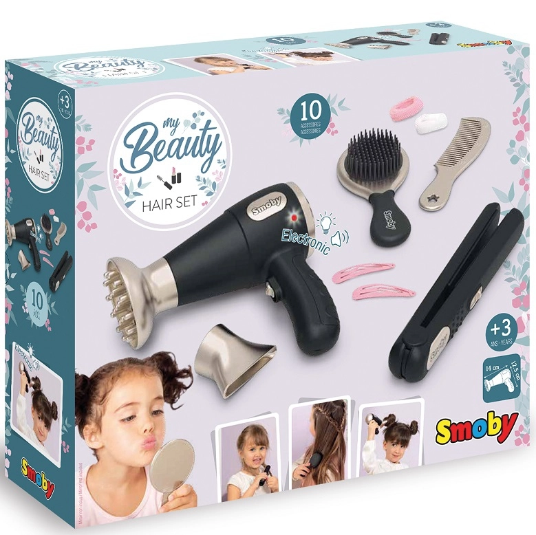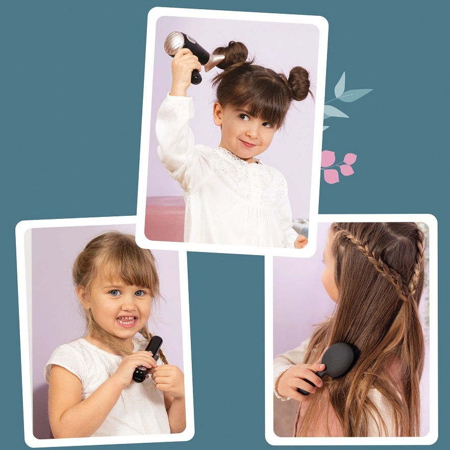 Vaikiškas kirpimo rinkinys Beauty iš SMOBY – puikus pasirinkimas mažiesiems stilistams ir stilistėms, mėgstantiems šukuosenas ir kūrybiškus žaidimus. Dėl realistinių detalių ir funkcinio žaislinio džiovintuvo su šviesa ir garsu vaikai pasijus tarsi tikrame salone. Gausi komplektacija leidžia kurti išradingus įvaizdžius lėlėms ir šeimos nariams.