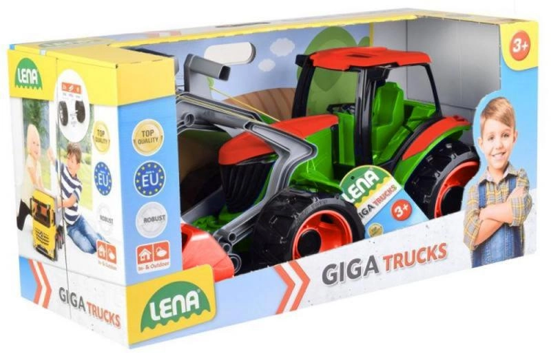 Vaikiškas LENA traktorius žalia‑raudona spalvų gama pasižymi šiuolaikišku dizainu, tvirta ir atsparia konstrukcija bei judančiu kaušu dar įdomesniam statybų žaidimui. Idealu mažiesiems statytojams nuo 3 metų.