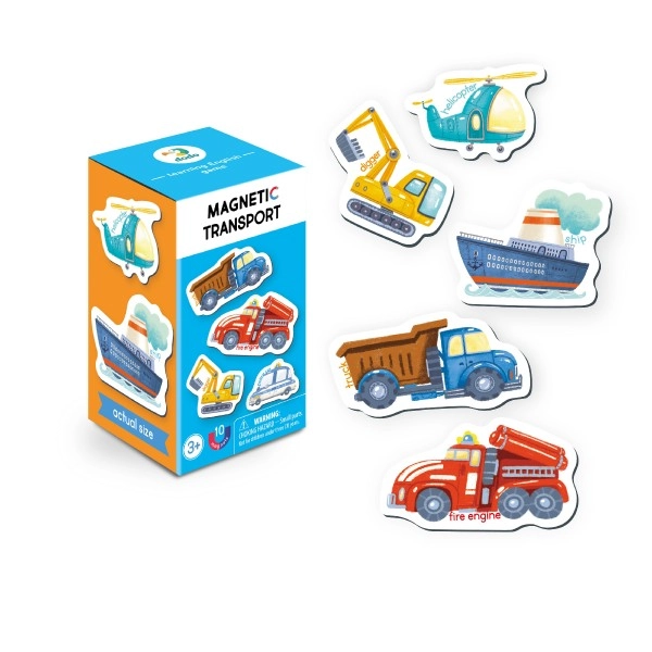 Magnetinis žaidimas Transportas yra ideali mokomoji priemonė anglų kalbai mokytis, jungianti pramogą ir mokymąsi. Dėl savo formos padeda vaikams patraukliai išmokti transporto priemonių pavadinimus anglų kalba.