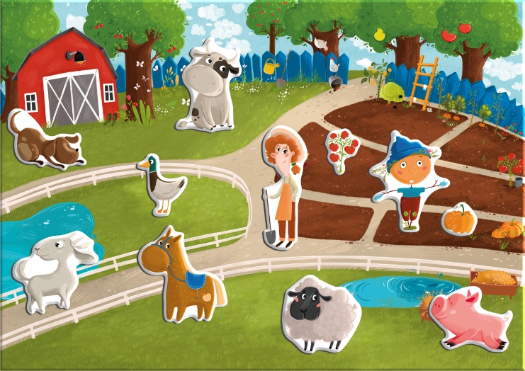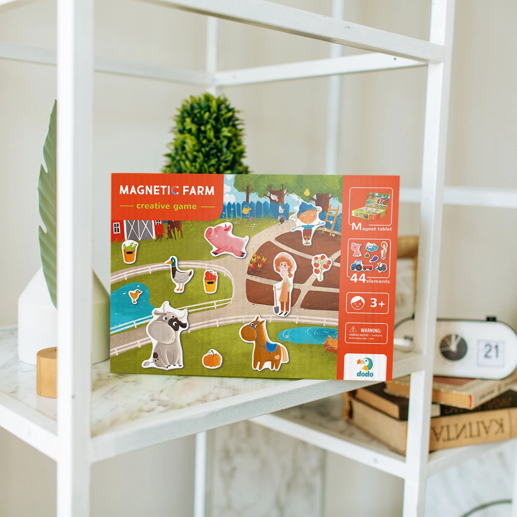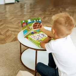 Magnetinis žaidimas Dodo Ferma yra puikus pasirinkimas mažiesiems tyrinėtojams. Vaikai dėlioja ūkio sceną, komponuoja gyvūnėlius ir daiktus ant magnetinės lentos ir kuria savo istorijas. Taip natūraliai lavinami kalbiniai įgūdžiai, fantazija ir susikaupimas.