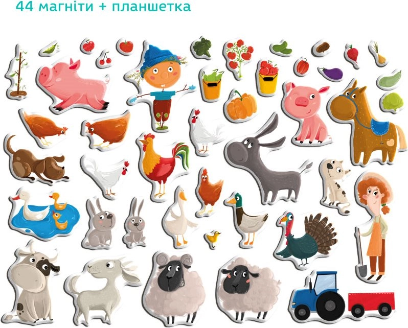 - 44 magnetiniai elementai su gyvūnais ir ūkio motyvais