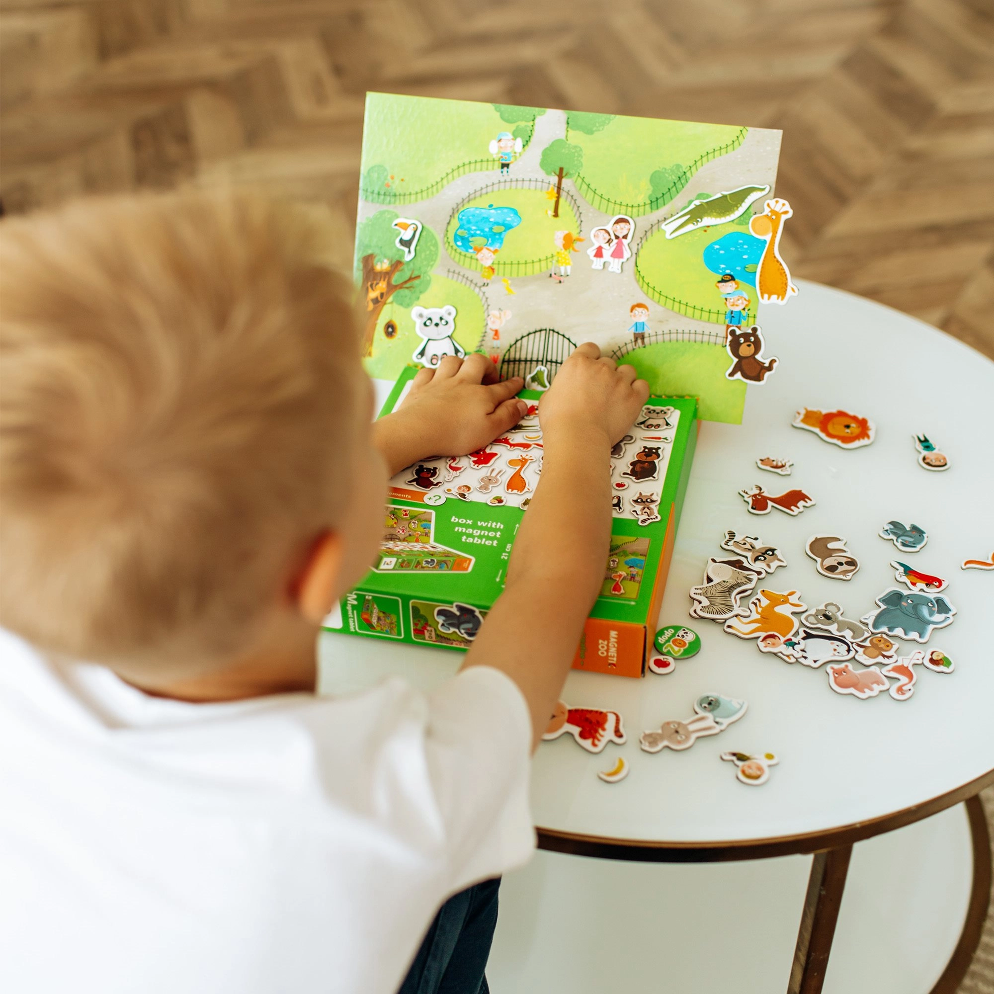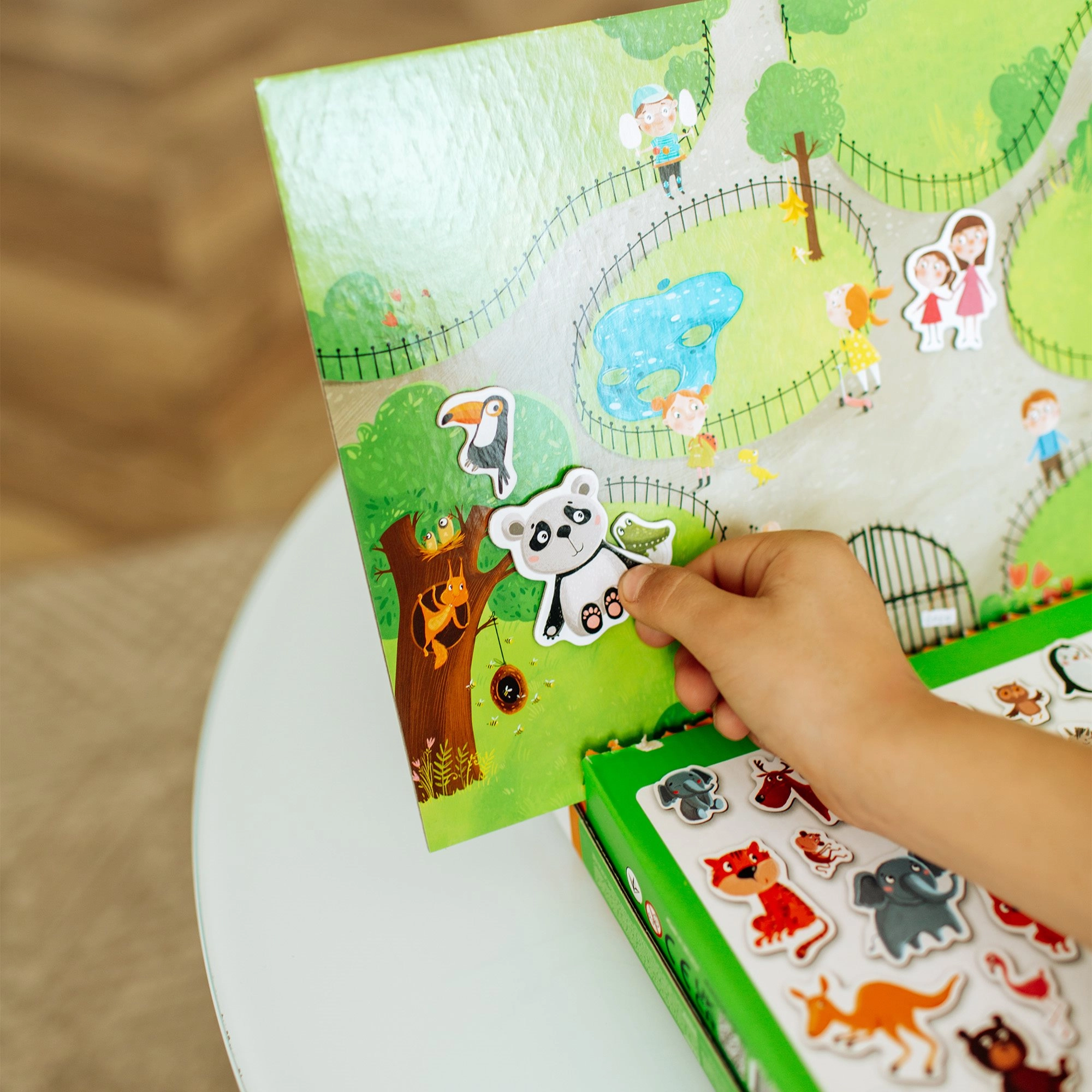 Šis magnetinis žaidimas – puiki dovana vaikams, kurie nori žaismingai pažinti gyvūnus. Kurkite zoologijos sodo scenas, įvardykite gyvūnus ir leiskite vaizduotei dirbti.