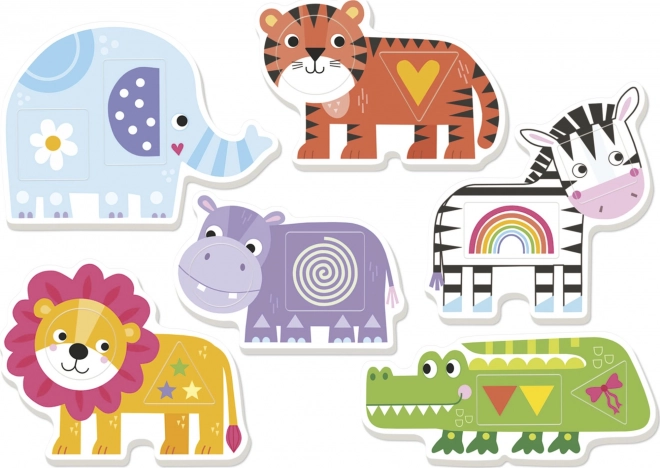 Rinkinyje yra 6 gyvūnai su 2 tarpusavyje susietomis figūromis, kurios sudomins ir pralinksmins kiekvieną vaiką.