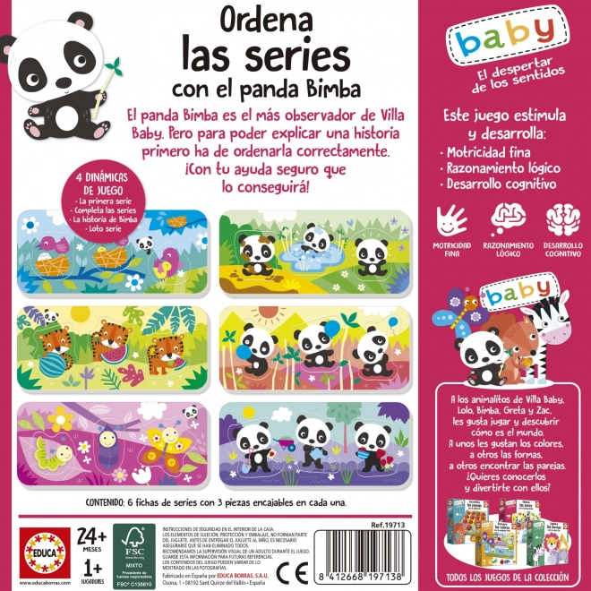 EDUCA Baby Puzzle Panda Bimba ir draugai – puikus edukacinis žaislas, skirtas vaikams nuo 24 mėnesių. Jis padeda lavinti dėmesį, smulkiąją motoriką, smalsumą ir vaizduotę pasitelkiant istorijas ir didelius, lengvai sugriebiamos formas.
