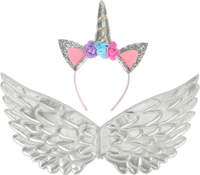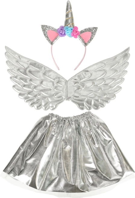 Šis nuostabus kostiumas leis paversti jūsų vaiką išskirtiniu vienaragiu. Jį sudaro sidabrinis sijonas, elegantiški sparnai ir kruopščiai pagamintas lankelis su gėlelėmis. Idealu bet kokiai progai, kai vaikas gali mėgautis pasakišku žaidimu.
