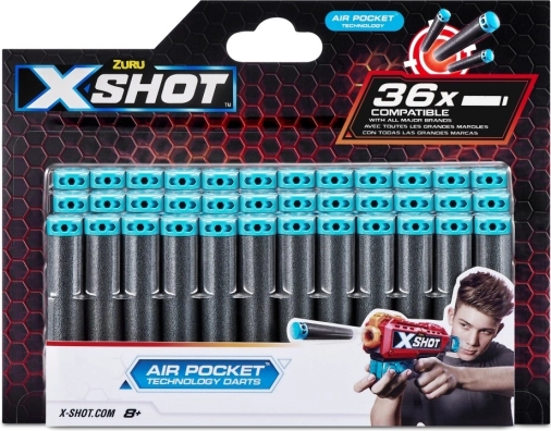 Su X-SHOT Excel Air Pocket Technology 36 putų strėlių rinkiniu gausite patikimą amunicijos atsargą ilgesniam ir intensyvesniam žaidimui. Dėl specialios konstrukcijos su Air Pocket strėlės pasiekia stabilesnį skrydį, didesnį tikslumą ir nuoseklų našumą.
