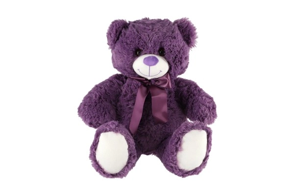Žavus violetinis 50 cm aukščio pliušinis meškiukas – idealus palydovas į lovytę ir į vaikų kambarį. Siūlo itin švelnią medžiagą, mielą, prisiglausti kviečiantį dizainą ir saugų atlikimą nuo 0 mėn. Dėka elegantiško kaspino ir minkštų letenėlių puikiai tinka glostyti, dovanoti ir naudoti kaip dekoraciją.