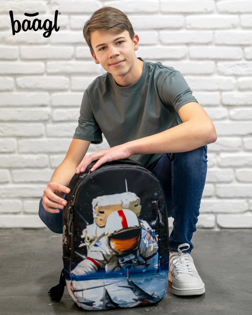 Kuprinė išsiskiria unikaliu į kosmosą keliaujančio astronauto iliustracijos dizainu, todėl atkreips dėmesį bet kurioje situacijoje.