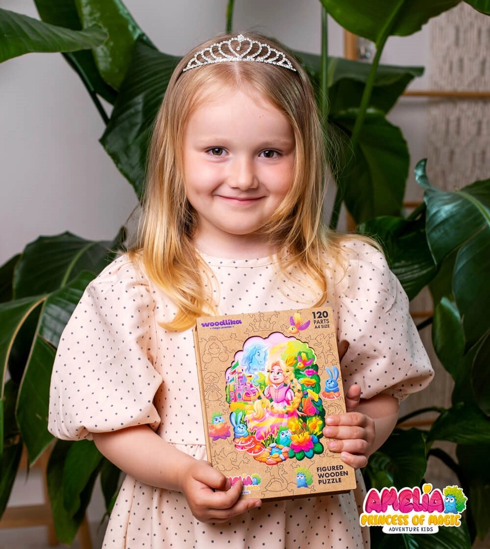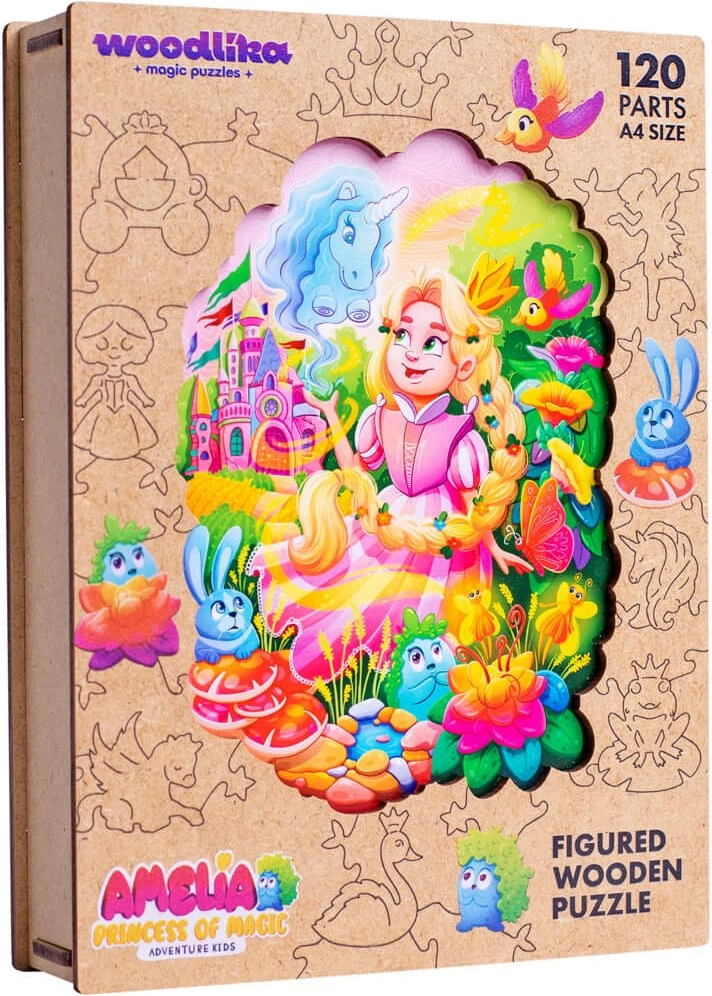 Medinė Woodlika dėlionė Princesė Amelija suteikia išskirtinę dėliojimo patirtį. Įvairių formų detalės, kurių dalis primena gyvūnus ir augalus, papildytos lazeriu paryškintomis detalėmis, kurios gražiai atgaivina motyvą. Dėl aukštos kokybės buko medienos detalės yra tvirtos, atsparios ir malonios liesti.