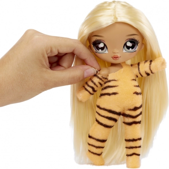 Patirkite visiškai naują išpakavimo būdą su lėle Na! Na! Na! Fuzzy Surprise Tiger Girl. Dėl specialaus flokuoto paviršiaus, kurį švelniai nuvalysite, prieš jus po truputį atsiskleis lėlė su ilgais plaukais, žavia veido išraiška ir madingais tigro stiliaus aksesuarais. Ideali dovana vaikams, kurie mėgsta staigmenas, madą ir kūrybišką žaidimą.