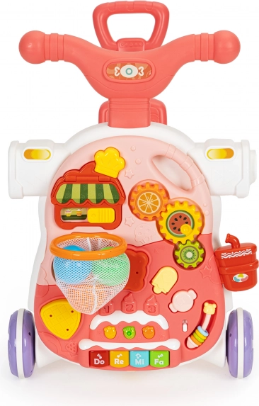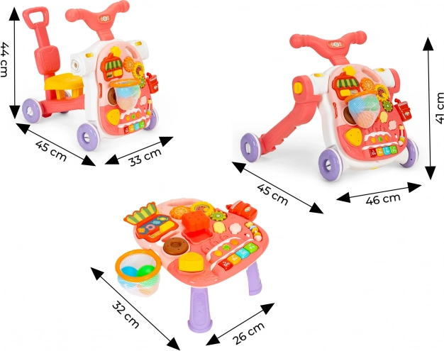 Valdymo pultą galite lengvai paversti staliuku paprastai atjungę mokomąjį skydelį nuo stumduko rėmo ir pritvirtinę kojeles. Taip vaikas turės staliuką, kuris kvies žaisti ir lavins jo smulkiuosius įgūdžius.