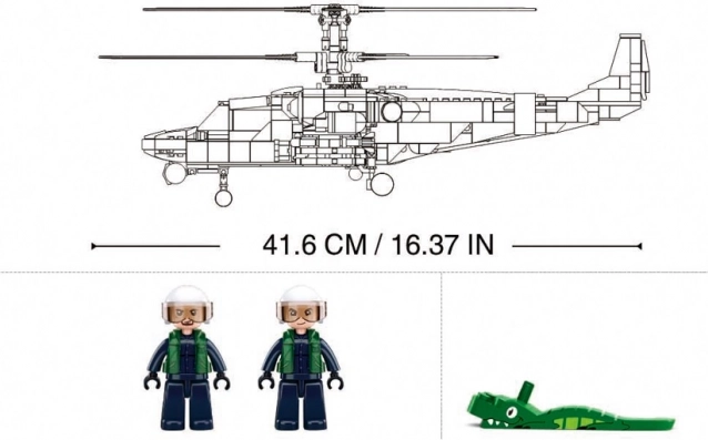 Kovinés paskirties sraigtasparnis Sluban KA-52S atneša jaudinantį modelių konstravimo pasaulį tiesiai į jūsų namus. Šį rinkinį sudaro daugiau nei 913 detalių, kurios leis sukonstruoti autentišką tikro karinio sraigtasparnio repliką.